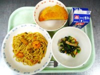牛乳 鶏肉とあさりのクリームスパゲティ ひじきのチーズサラダ 手作りスイートポテ...