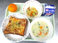 牛乳 ジャーマンポテトトースト コーンたっぷりサラダ 白菜のクリーム煮 みかん ...