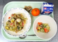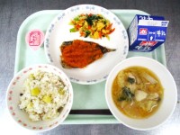 牛乳 吹き寄せご飯 ししゃもの磯辺上げ 我孫子産野菜の味噌汁