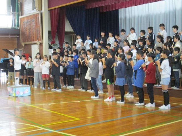 5年生の挑戦したリコーダー曲は速いメロディーで、最初は難しいと気持ちが乗らない時もありましたが、実行委員を中心に声掛けが始まり、自主練習、朝練習につながったことが、成功への近道となりました。