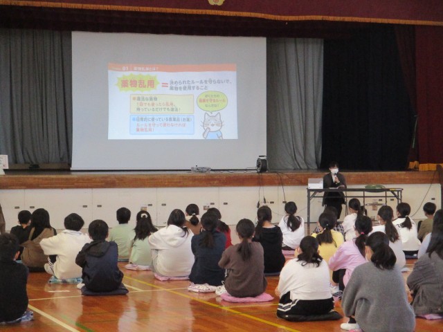 6年生は、45分間たっぷりと薬物乱用防止に向けてのお話を聞き、薬物乱用の恐ろしさ、大切な自分や家族を守るためにはどう行動したらよいのかなどを学びました。