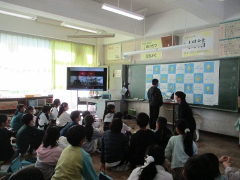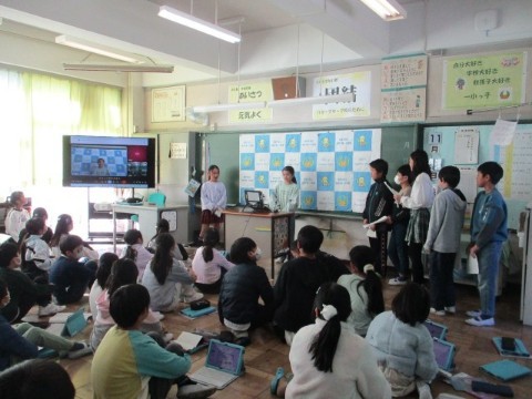 一小からのプレゼンのあと、新木小の5年生からの質問に答えるなど、双方向での学習交流ができました。