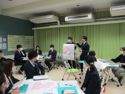 それぞれが考えたプランをより具体的なものとしてプレゼンするために、国語の学習でパネルディスカッションを行い、お互いのプランについて意見を交わしました。