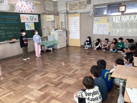 1年生の前で発表する2年生の姿は、4月のころとは全く違う頼もしい姿に成長していました!!