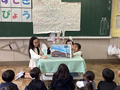 2年生は、1年生にわかりやすく我孫子のまちの様子を伝えようと、イラストを使ったり、ペープサートで劇をしたり、クイズを出したりとたくさんの工夫を凝らしていました。