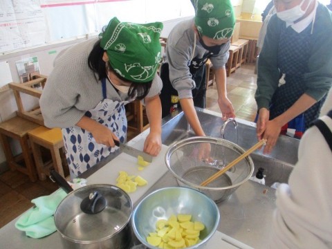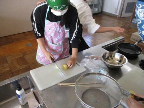 6年生が、家庭科の調理実習でジャーマンポテトを作りました。