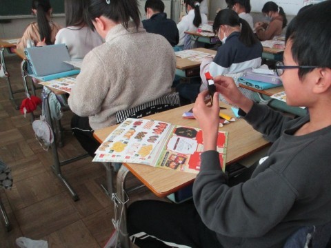 5年生は日本語で「和食の秘密」ということで、おせち料理に込められた日本の文化を学び
