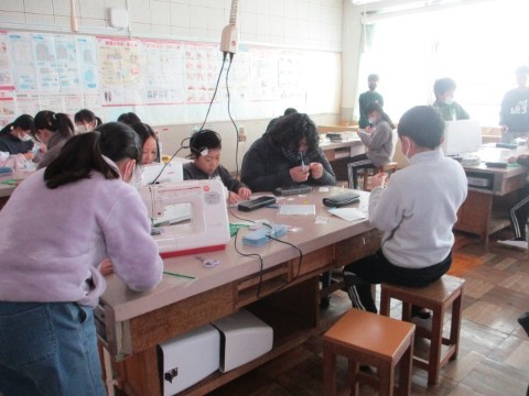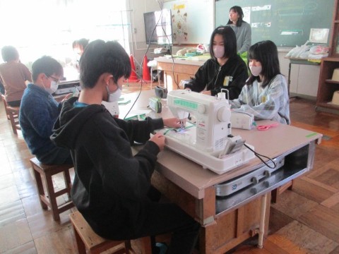 家庭科室をのぞくと6年生が、ミシンを使って何やら制作しています。