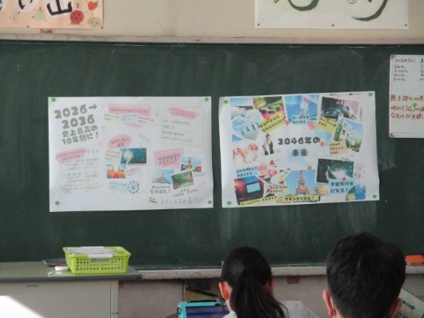 また、6年生の別の教室では、何やら未来予想図を作っていました。