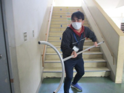 危害を加える可能性がある不審者とのことで、男性職員がさすまたを持って現場に駆け付け、複数職員で不審者を取り押さえました。