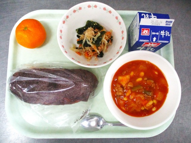 牛乳 ココアあげパン 大根サラダ ポークビーンズ みかん