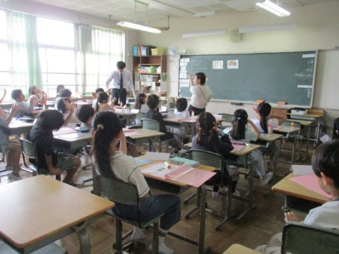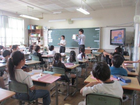 そして今年度は、さらに、4年生に理科専科として教務主任が入り、3年生の英語活動にはALTとともに教頭先生が英語活動専科として加わりました。