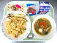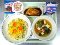 牛乳 焼肉チャーハン 五目中華スープ スナックアーモンド さつまポテト 今日 の...