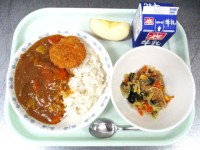 牛乳 カツカレーライス こんにゃく海藻サラダ りんご 3月 はまとめの月です。今...