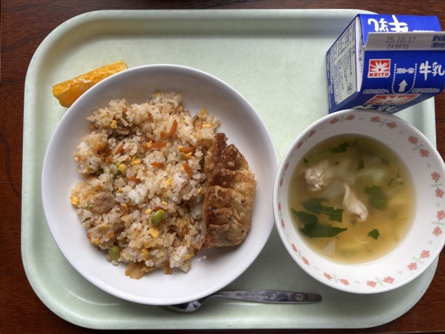 キムチチャーハン 津ぎょうざ チンゲンサイのスープ オレンジ