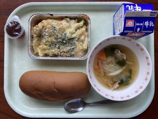 黒糖パン マカロニグラタン ポテトスープ ひとくちぶどうゼリー
