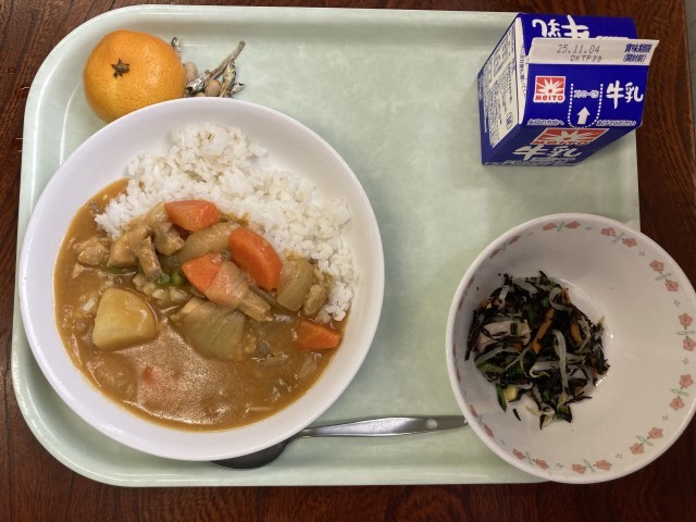 チキンカレーライス ひじきのサラダ いりこ大豆 みかん