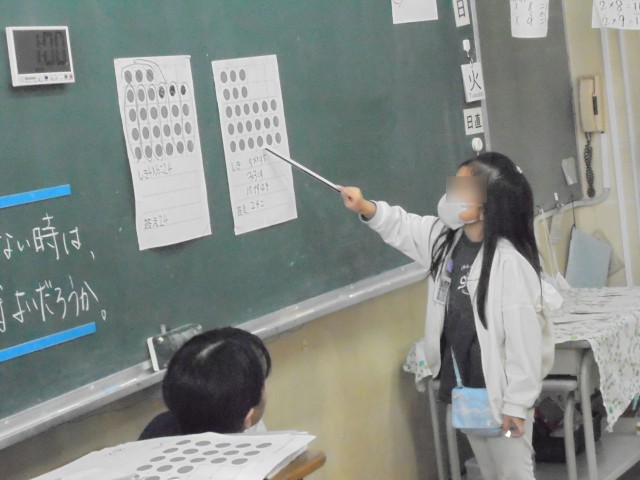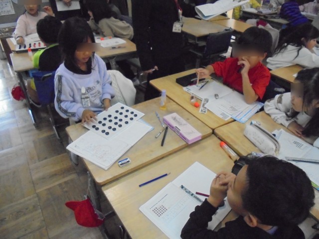 5校時に、2-1にて研究授業が行われました。本校の研究のテーマは「共に高め合い、主体的に学ぶ児童の育成」です。関わり合いながら考えを深め、「できた」「わかった」「やりたい」を引き出していきます。今日は、箱に入ったチョコレートの数を、かけ算をつかって求める問題です。チョコレートの登場に盛り上がり、「食べちゃったところがあるから、同じ数のまとまりで計算できない?」というところからスタート。「でも、できそうだよ。」「動かす?」「わける?」子ども達からつぶやきも。一人で考えたり、グループで考えたりして、色々な答えの求め方を出し合いました。チョコレートに見立てた磁石を動かしたり、図を描いたり、式に表したり…そして、「動かしたり、分けたり、引いたりすると同じ数のまとまりをつくることができる」という結論にたどりつきました!友達の考えを聞いて「なるほど~」「同じやり方!」など、とっても反応が良い2年生。先日2-2で行った時も、同じように活発な活動でした。2年生は、かけ算九九を一生懸命覚えていた頃から、2学期はかけ算の勉強をしっかりと行ってきました。授業が終わりの時刻になると「もっとやりたかった…。」この気持ちで次の時間も頑張ります。