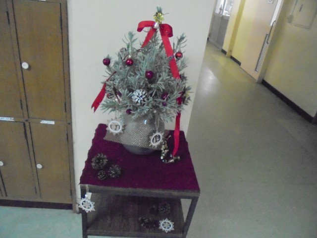 12月に入って、寒さが増してきました。職員玄関にはかわいいクリスマスツリーが!