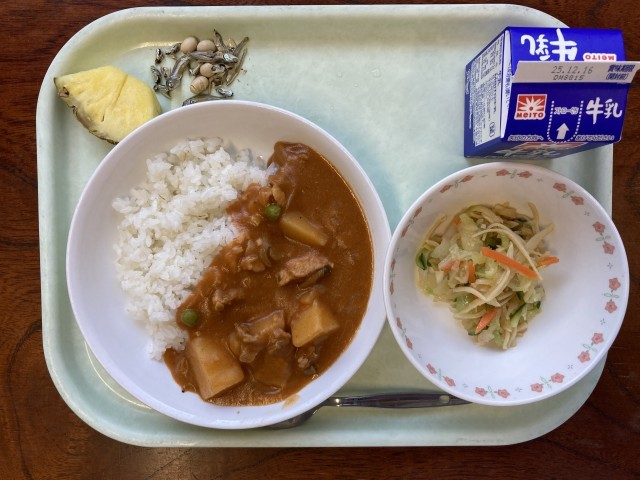 ハヤシライス 切り干し大根のサラダ いりこ大豆 パイナップル