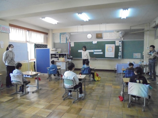 今日は友達に声をかけたり応答したりして関わる中で、「はい。」と返事をすることを目標に活動しました。名前を呼ばれたら「はい。」と返事をすることを意識して、先生とやりとりをしたり、友達と仲間づくりゲームをしたりしました。また、パズル作りでは、3人ずつのチームで、力を合わせて1枚の絵を完成させました。上級生が優しくリードしてあげて、3人で仲良く活動する姿が素敵でした。姿勢よく先生の話を聞いたり、前に出る時には椅子を机にしまったり、返事をしたりと、毎日の積み重ねを感じる授業でした。