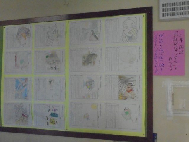 先日ご紹介した、ゆりのき2年生の「お話びじゅつかんを作ろう」の活動は、廊下に子ども達と先生達のお気に入りの絵本の紹介シートが飾られました!冬休みに読んでみてほしいです。