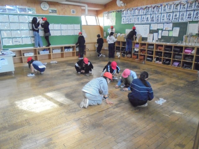 終業式前日、各クラスでは様々な活動がありました。例えば、これまでの掲示物をまとめる、プリントを綴じる、学習の振り返りを行う、冬休みのしおりを読む、荷物をまとめる、レクをする、大掃除をするなど…。どの教室をのぞいても、「2学期が終わるんだなぁ。」と感じました。大掃除では、普段はやらないエアコンのフィルターや扇風機の羽根をきれいにしたり、机を教室から出して床を磨いたり、机や椅子の足をきれいにしたり、ドアや敷居を拭いたりと頑張る姿がたくさん見られました。気持ちよく新年を迎えられそうです。