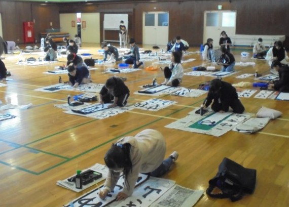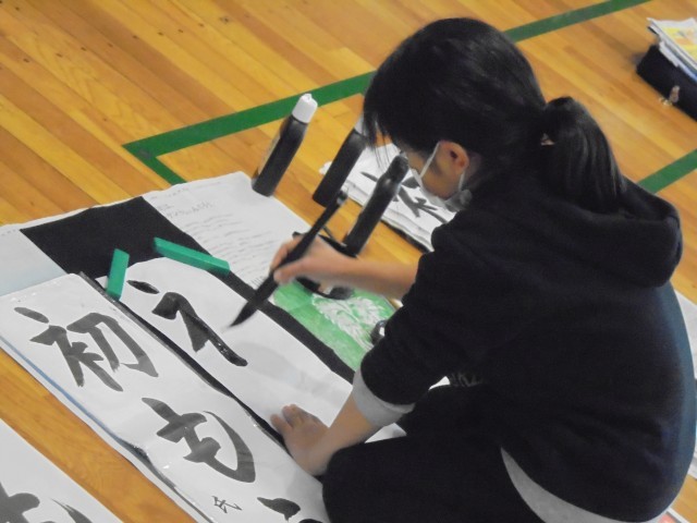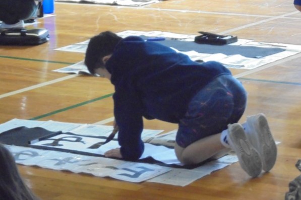 今日は書き初め大会1日目。4年生、3年生、2年生が行いました。