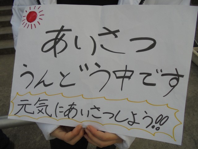 今月、生活委員会が朝の登校の時間にあいさつ運動を行っています。いつも安全管理員や校長にあいさつをする子ども達はたくさんいますが、委員会の子ども達がいると普段よりもあいさつのトーンが明るく上がる感じがします。寒い朝ですが、あいさつを交わすとそれだけで元気が出ます。あいさつが聞こえる朝の学校は良いものです。