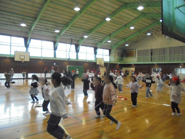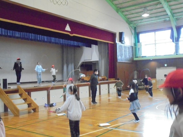 昼休みは、体育委員会がリズム縄跳び講習会を行いました。昼の放送で呼びかけると、練習したい児童が体育館に集まりました。リズム縄跳びの音楽を流しながら練習です。子ども達は元気に縄跳び練習を行っていました。今後も昼休みに講習会をする予定です。