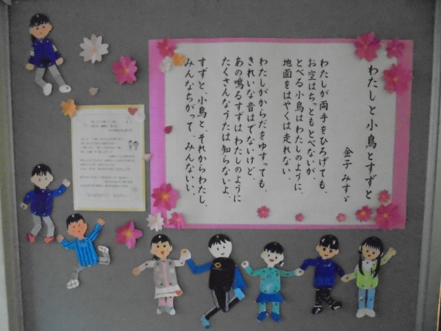 そよかぜルームの前には、金子みすゞさんの詩が。「みんなちがって、みんないい」一人一人それぞれの良さがあります。誰かと比べる必要はありません。自分の良さ、友達の良さを大切にしていってほしいです。