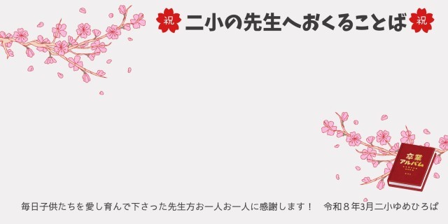 毎年出会いと別れが交差し、また感謝が交差するのが学校。新しい1年も二小がたくさん輝きますように!