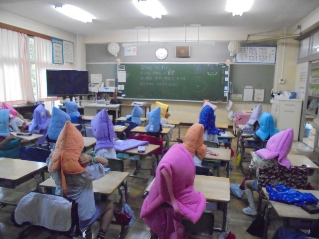この後、放送で校長から話をしました。静かに、真剣に、先生の指示を聞いて行動することができたこと、普段から「先生の話を良く聞くこと」と「廊下や階段は落ち着いて歩くこと」を身に付けておくと、いざという時に全校みんなで安全に避難できること、自分の命は自分で守ること、など話しました。ちょうど昨日は青森県で震度5強、先日の土曜日は長野県で震度5強など、地震のニュースが相次いでいることもあって、訓練の必要性を感じます。子ども達もしっかりと話を聞いていました。