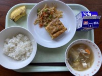 ◎献立麦ごはん ししゃもの磯辺揚げ 根菜汁 たくあん入り和え物 ヨーグルト