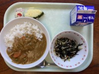 ◎献立ハヤシライス 和風わかめサラダ ベビーチーズ オレンジ
