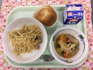 牛乳 和風きのこスパゲッティ ポテトスープ 手作りシュガーバターパン