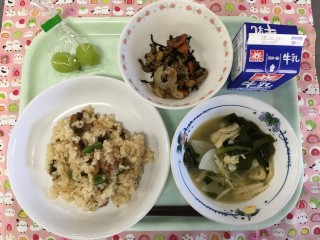 10月2日の給食 公開日 2025/10/02 更新日 2025/10/02 給食 (今日の献立)牛乳 さんまのかば焼き混ぜご飯 大豆の五目煮 かぶのみそ汁 シャインマスカット 今日は、短冊切りのさんまに下味をつけて片栗粉をまぶし、油で揚げて、甘辛いたれをからめて、ご飯に混ぜました。魚が苦手でも食べやすい、今の季節ならではのメニューです。
