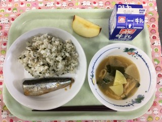 10月7日の給食 公開日 2025/10/07 更新日 2025/10/07 給食 (今日の献立)牛乳 しらす入りわかめご飯 いわしの生姜煮 じゃがいものみそ汁 りんご 今日は、千葉県産のいわしを砂糖、しょうゆ、酒、みりんと生姜やねぎと一緒にじっくり煮ました。柔らかく、味がしみていてとてもおいしく仕上がりました。