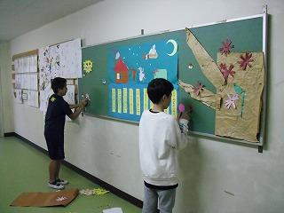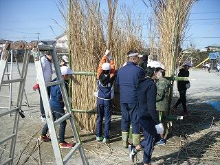 明日の「あわんとり」に向けて,6年生が小屋掛けの作業を行いました。5年生は,始業式の日から,近所を回ってお飾りを集めて来ています。また,各校舎に集まったお飾りを,サンサン通りに運んでくれています。4年生は,「あわんとり」のポスターを作成してくれました。明日の本番が楽しみです。