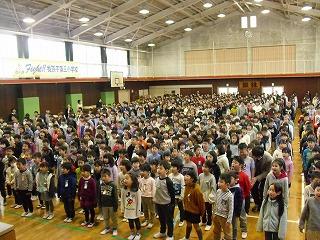 今日は,1月最終日でした。業間休みの体育館では,新旧児童会役員の児童達が引き継ぎ式の練習をしていました。また,各学年で,「6年生を送る会」や「卒業式」に向けても準備が進められています。