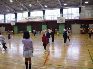 1年生は,幼保小連携の一環として,近隣の保育園児を三小に招待し,昔遊びの会を行いました。地域の方に教わったけん玉,こまなどの昔遊びをペアの保育園児に優しく教えたり,一緒に楽しく遊んだりする姿がたくさん見られました。お兄さん,お姉さんとして,しっかりと保育園のみんなをリードしていました。
