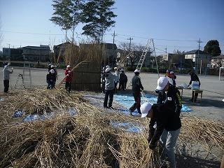 あわんとりに向けて,茅取り,竹切り,竹割りの作業を,PTA,ボランティアの皆さん,職員で行いました。今回準備をした茅と竹を使って,小屋掛けを行います。小雨の中,作業に参加していただいた皆さん,ありがとうございました。