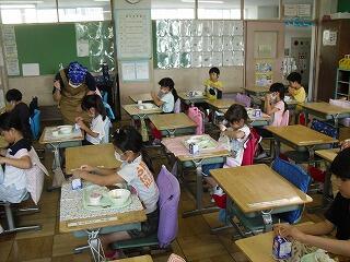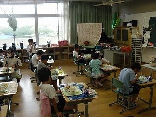 今日は,Aグループ(2~6年生)の給食開始でした。だんだんと夏の暑さに近づいてきました。当たり前ですが,まだ,暑さに慣れていない児童が多いようです。校庭での体育では,こまめに水分補給をする,説明や休憩は日陰でする,スプリンクラーを回すなどの暑さ対策をしています。