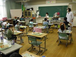 感染リスクを少しでも下げるために,上記に挙げた以外にも,栄養教諭や調理員の皆さんも様々な工夫をしていただいています。明日からも衛生管理に十分気をつけて,給食指導を進めていきたいと思います。