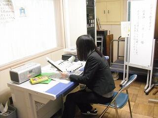 実際に書いていただいているのを見ています。一文字一文字,丁寧な解説つきです。真剣なまなざし!!