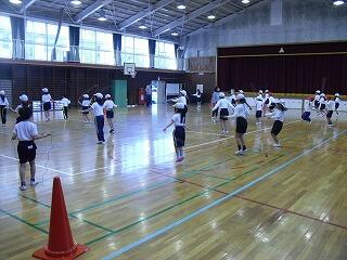 体育館では,4年生が跳び箱を頑張っていました。1年生は,昔遊びの練習です。