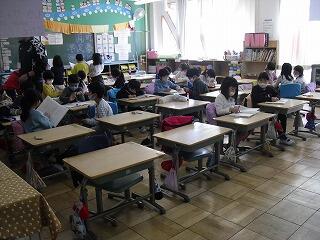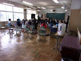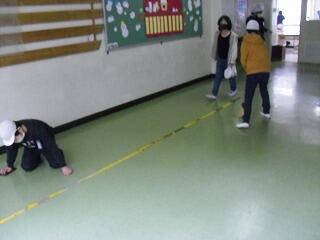 6年生は素早く机下にもぐり,避難をしていました。他の学年も静かに避難していました。