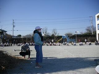 1年生と一緒に縄跳びの練習をしました。
