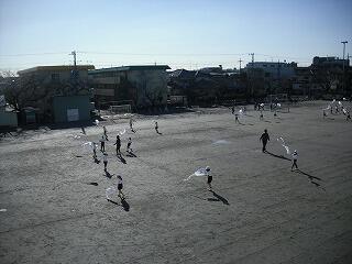 今日は,風も強く寒い一日になりました。1年生は,生活科の学習で作った凧をあげて,楽しんでいました。