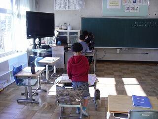 今日は,放送で2月の全校朝会を行いました。みんな真剣に,校歌や教頭先生の話等を聞きました。寒い中ですが,そうじも頑張っています。